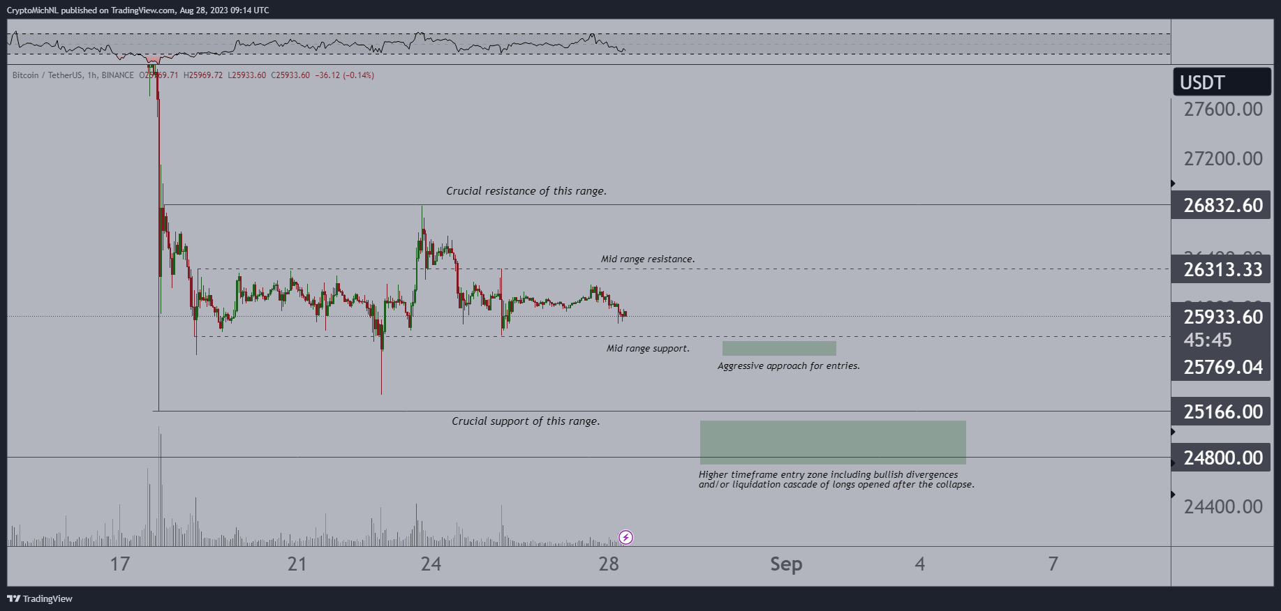 “RSI 仍然非常低,已经持续 1.5 周了,”他们在 8 月 28 日的 X 评论中写道。